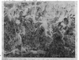 為了探討復(fù)合結(jié)合劑在莫來石結(jié)合剛玉磚中所起的作用,我們對1#試樣1500℃×3h燒后和1000℃×3h燒后的樣塊作了電鏡分析,其圖像如圖1和圖2所示;