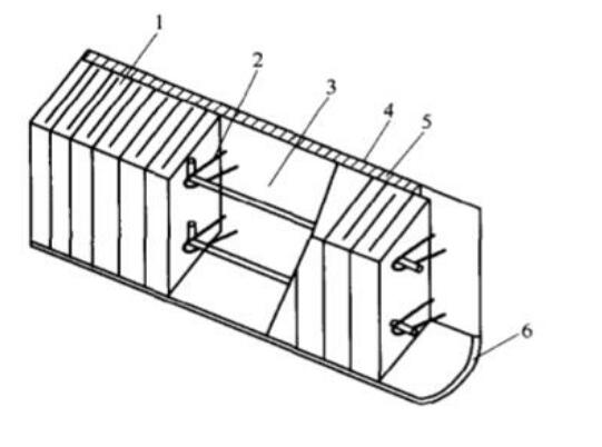 4-爐壁鋼板;5-平鋪纖維毯;6-纖維補(bǔ)償層